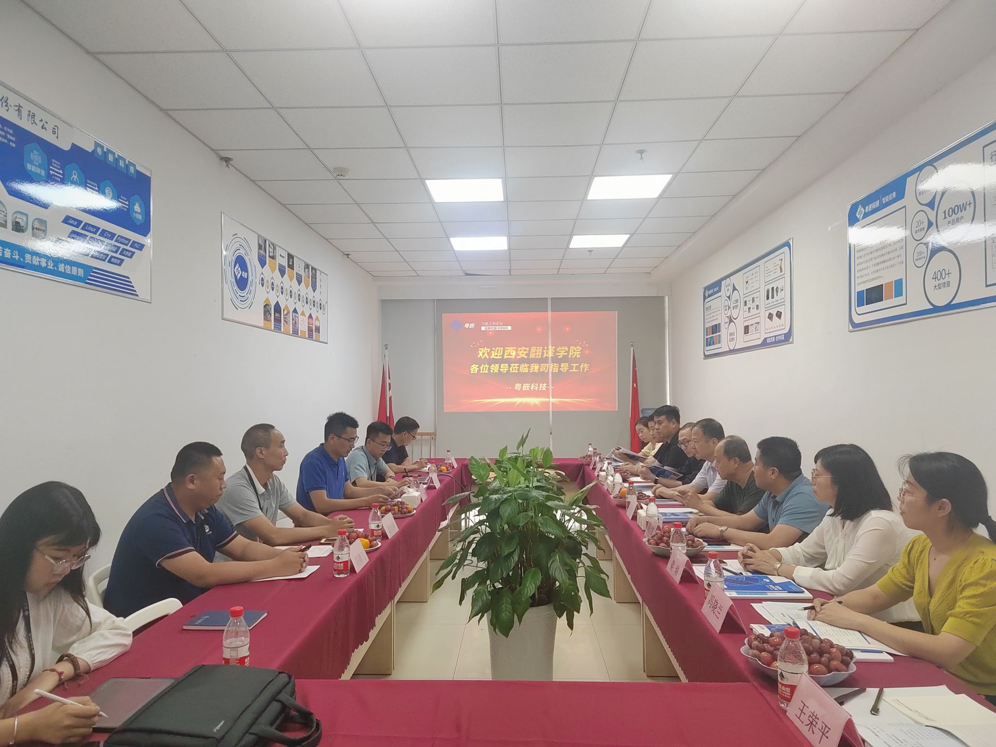 西安粤嵌信息科技有限公司中心总经理王乐忠,校企合作部总监高博龙及其他教学部总监对于米兰milan官方网站调研团一行人员的到来表示热烈欢迎。在会上由粤嵌总经理王乐忠并首先介绍了本公司的情况:粤嵌始于2005年,2016年正式挂牌上市,是一家IT高新技术企业。其次介绍了其公司在校企合作与拓展学生就业方面的措施与办法,并分享了其与其他学校合作的经典案例。随后,樊校长对米兰milan官方网站人才培养模式,专业设置和2022届毕业生就业情况进行了介绍,希望企业能为学生提供更多优质的专业对口就业岗位和全方位创新创业指导扶持服务。信息工程学院葛海波院长非常认可王乐忠总经理提出的新生认知实习等建议,希望后期加深合作。最终校企双方在教学实践、实习实训、就业对接、校企合作等方面达成进一步合作共识。