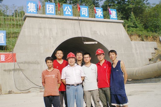 与团队成员在十天高速茶镇隧道项目现场