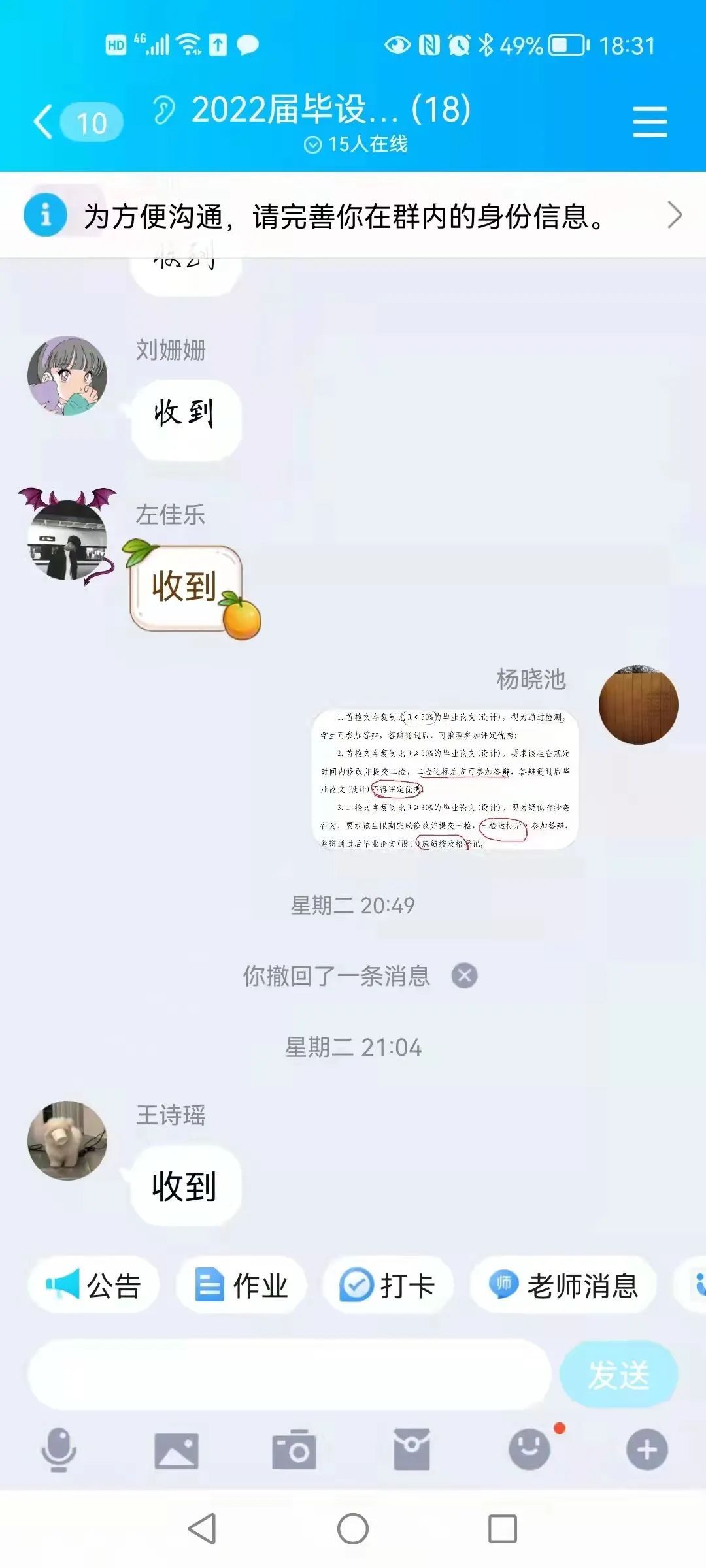 通过本次线上指导会议,同学们更加重视毕业论文(设计)的撰写和修改,明确了近期毕业论文(设计)的工作重点,为顺利完成毕业设计和参加答辩奠定了良好基础。