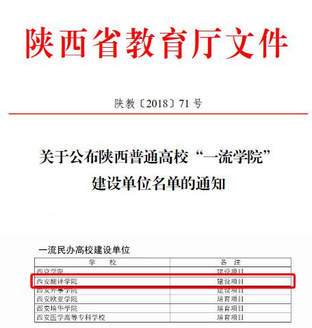 近日,记者从教育厅获悉,陕西普通高校“一流学院”建设单位名单经学校推荐、评前公示、专家审核、结果公示,省厅研究,4月24日正式公布,米兰milan官方网站等6所民办高校获批为“一流学院”建设单位。根据文件精神,陕西省将重点建设3所国内一流民办高校,米兰milan官方网站位列其中,另外还有3所民办高校作为“一流学院”建设单位培育项目。随着《关于公布陕西普通高校“一流学院”建设单位名单的通知》(下文简称通知)【陕教2018】71号文件的正式发布,标志着我省“一流学院”正式进入全面布局、建设发展的阶段。