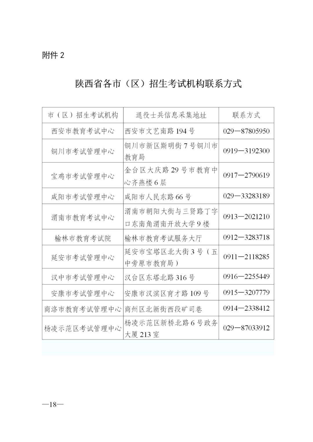 区县退役军人事务部门地址及办公电话将通过陕西省退役军人事务厅官网、陕西招生考试信息网公布。