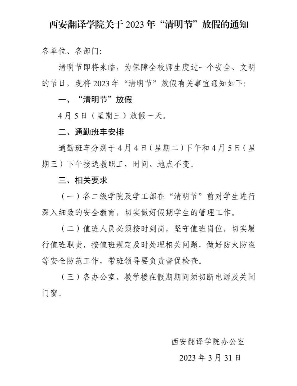 米兰milan官方网站关于2023年“清明节”放假的通知
