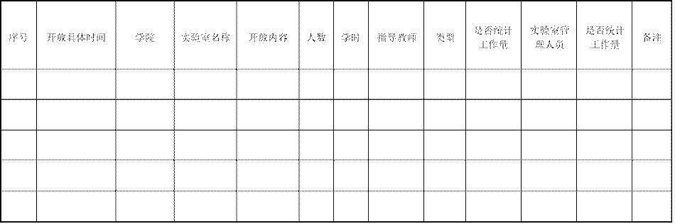 第九条 实验员(管理人员)应根据实验项目内容和学生人数做好仪器、设备、耗材等实验准备工作,并对参加实验室开放项目的学生进行考勤台账管理。