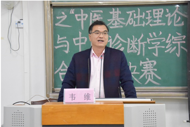 比赛伊始,韦维致辞,他阐述了比赛的意义以及对选手的期待。同时他还指出作为一名中医学生,必须学好专业知识,掌握相关本领,传承并弘扬我国中医文化。