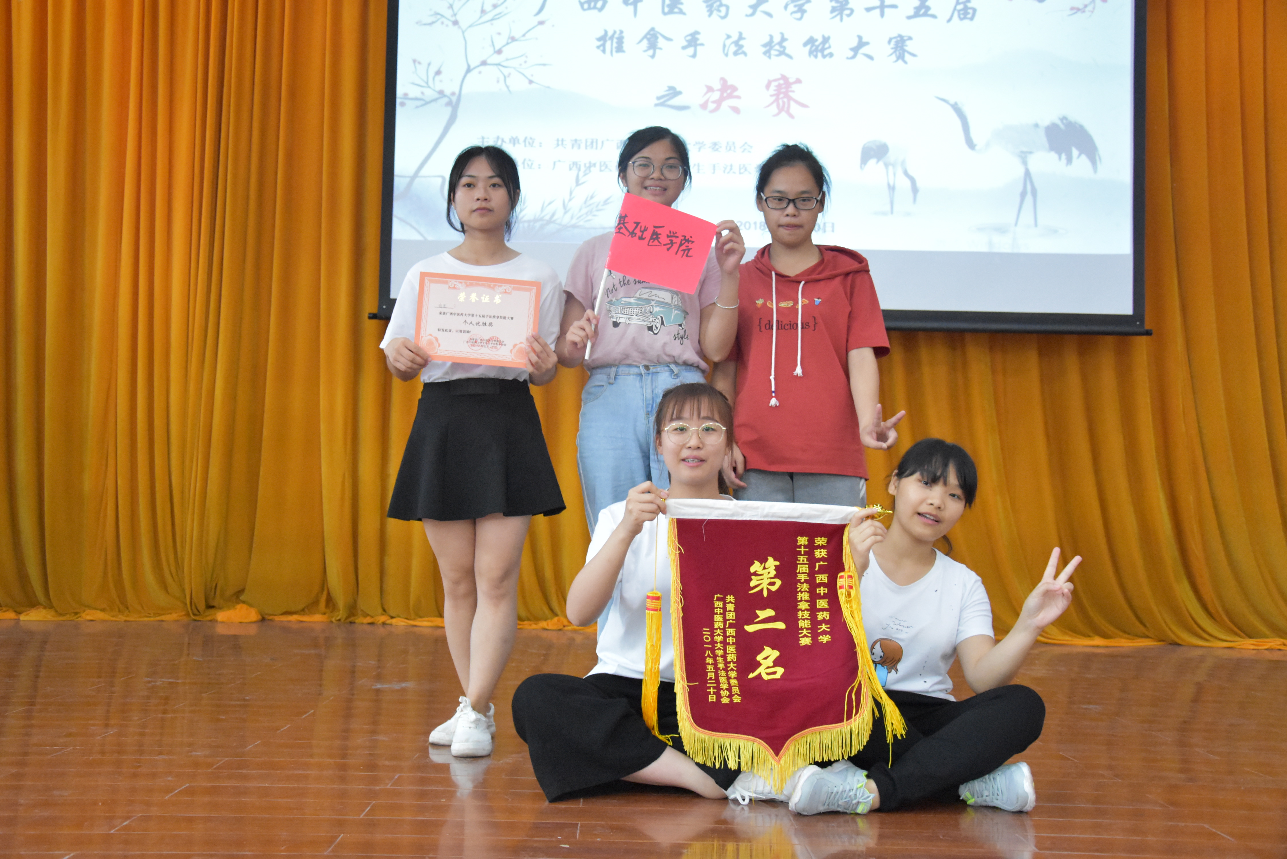 基础医学院荣获taptap点点体育第十五届推拿手法技能大赛第二名 来源:基础医学院 作者:图/韦伟 文/李琨 梁晋铭 发布时间:2018-05-23 23:29:40 浏览次数: 次 【字体:小 大】 5月20日taptap点点体育第十五届推拿手法技能大赛决赛在仙葫校区小礼堂举行,基础医学院代表队荣获本届大赛第二名好成绩。活动开始,主持人向观众简单介绍本次比赛的主要内容,随后马上进入到紧张刺激的比赛环节。各个学院派出代表依次上台,决赛分理论现场答题和现场操作两个环节。基础医学院的选手稳扎稳打,运用平时所学的知识与技能,完美发挥,最终取得本次比赛第二名。比赛现场参赛选手 分享到: 【打印正文】