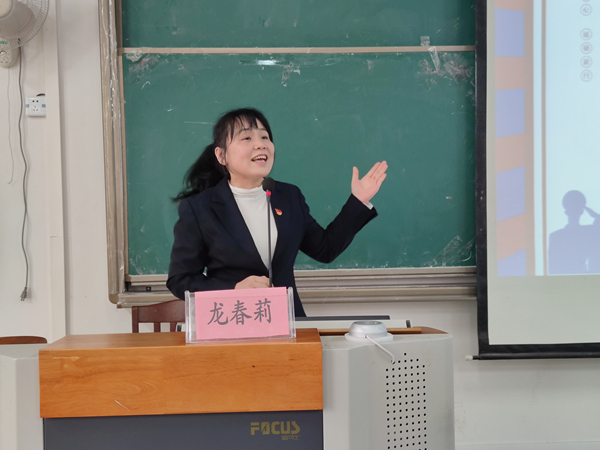 龙春莉使用大数据生动地向同学们阐述了国家从高校征集大学生士兵的重要意义,龙春莉副书记呼吁同学们积极投身国防建设事业,这不仅是在为国家做贡献,也是对个人成长有益的,是对个人品质、意志和气质的锤炼。
