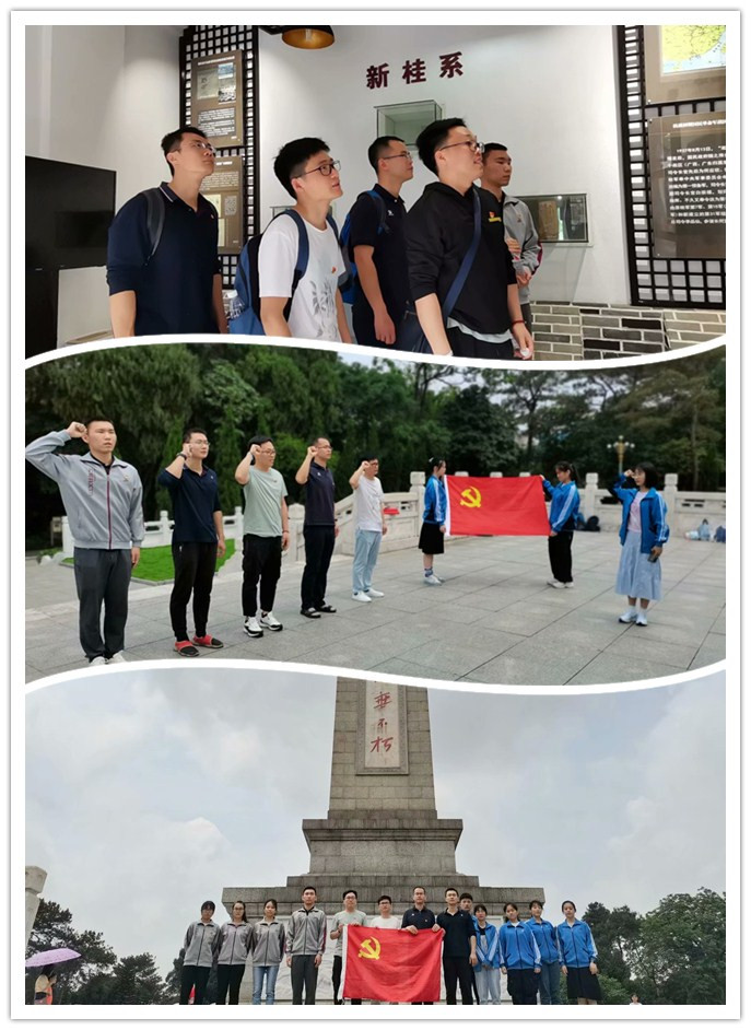 活动正式开始前,为了展示当代年轻人良好精神面貌,深入联系群众,宣传传统民族文化,支部党员和入党积极分子进行太极拳展示,和现场老人一起打太极,进行亲切的交流。然后支部师生一行分别在“镇宁炮台和“毛主席接见广西人民纪念馆”开展党史学习。通过一段段广西革命史,通过一张张宝贵照片,通过一件件历史物件,仿佛将在场师生重新带回到那段难忘而光荣的岁月,又重新见证那段峥嵘而辉煌的历史,无不受到极大鼓舞和激励。最后,我们前往革命纪念碑开展祭奠革命先烈活动,伴随着庄重的“哀曲”,先是全体人员默哀一分钟,党员代表讲话,向逝去革命烈士三鞠躬;随后全体成员依次向革命纪念碑献上小白花,同时瞻仰革命纪念碑,学习建碑的历史和意义;最后全体党员高举右手,庄严重温《入党誓词》。 作为当代大青年人,应该加强政治理论学习,积极加入党史学习教育,用党史来激励人、教育人、引导人、纯洁人,在党史中汲取力量,获取经验,淬炼意志,努力培养青年创新精神,不断提高政治觉悟,甘于奉献!
