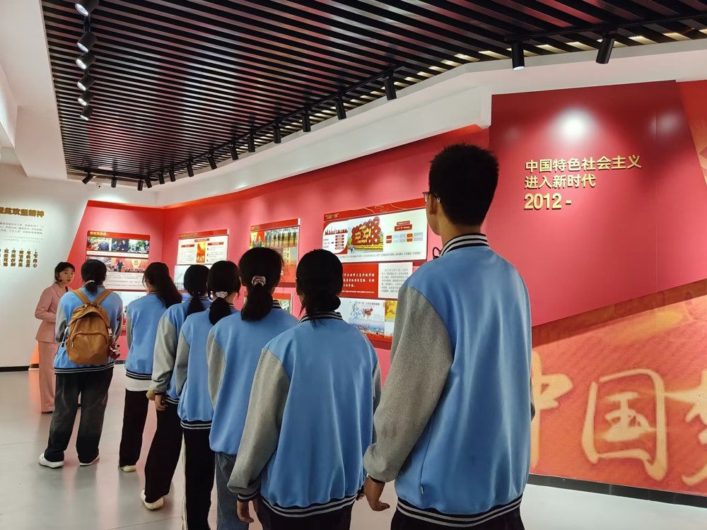教学开始,解说人员向同学们介绍了四史馆的背景以及展出的内容,让同学们对接下来需要学习的内容有了大致的了解;接着,在解说人员的带领下,同学们首先参观了第一展示厅“新民主主义革命时期”,在这一展馆,同学们看到了复原的红船,在解说人员的讲解下,同学们身临其境,仿佛中国共产党的成立就在眼前,小小红船承载千钧,播下了革命的火种,开启了中国共产党的跨世纪航程;紧接着,同学们移步第二展示厅“社会主义革命和建设时期”,这一展馆展示了新中国成立以后,由于中国共产党缺乏各项建设的经验,新中国在探索中曲折前行的艰辛历程,参观了这个展示厅后,同学们了解到了党领导人民进行社会主义革命和建设的艰苦奋斗历程,对同学们坚定中国特色社会主义具有重要意义;移步第三展示厅“改革开放和社会主义现代化建设新时期”,中国自此进入了高速发展的时期,改革开放的故事萦绕在同学们的耳畔,一国两制的科学构想浮现在同学们的脑海。坚定道路自信,增强道路定力,勇于理论创新,始终与时俱进,这是同学们从中得到的启示;最后,同学们移步第四展示厅“中国特色社会主义进入新时代”,全面建成小康社会、全面深化改革、“两个百年目标”,一个个同学们耳熟能详的词汇陈列馆内,在解说人员的讲解下,这些理念深深地烙印在同学们的心中,新时代的故事让同学们的心久久不能平静。中国特色社会主义进入新时代,让同学们更加深刻地体会到了中华民族迎来了从站起来、富起来到强起来的伟大飞跃的意义,同学们必将坚定信心,奋发有为,为社会主义现代化建设奉献青春力量。参观完毕之后,同学们合影留念,至此,本次现场教学圆满结束。