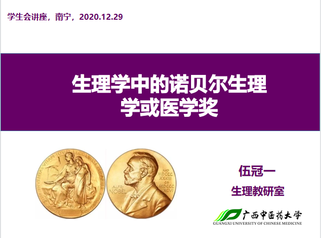 伍冠一老师---生理学中的诺贝尔生理学或医学奖