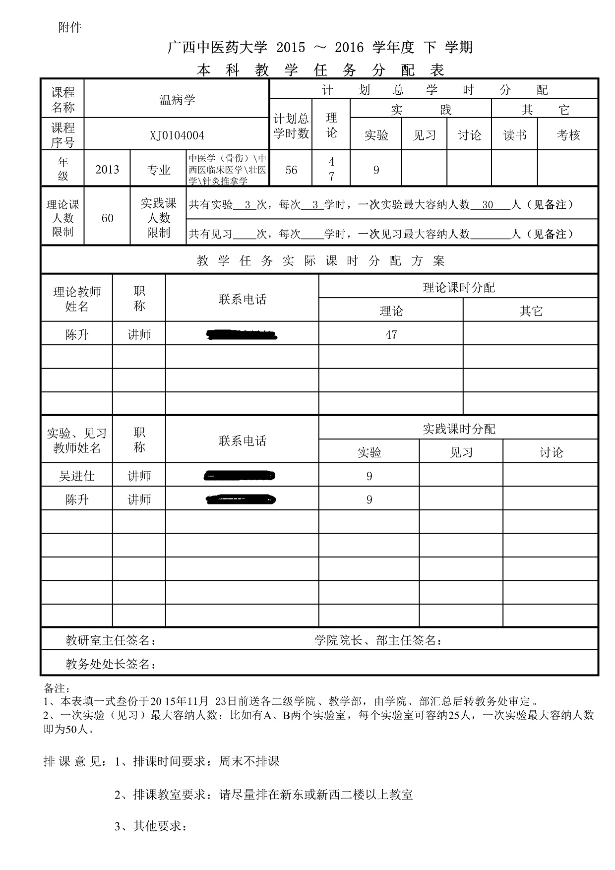 《温病学》教学任务分配