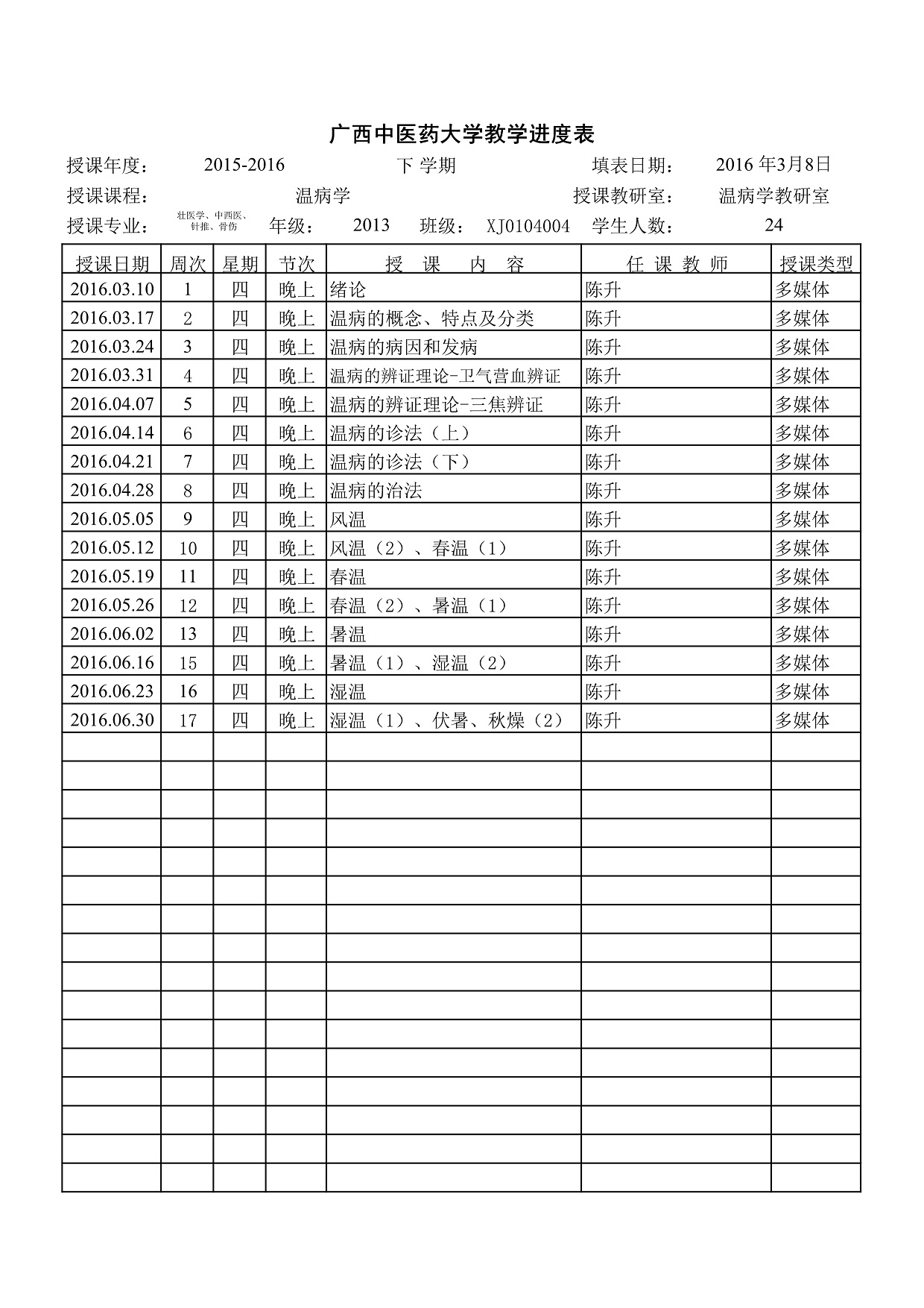 教学进度表