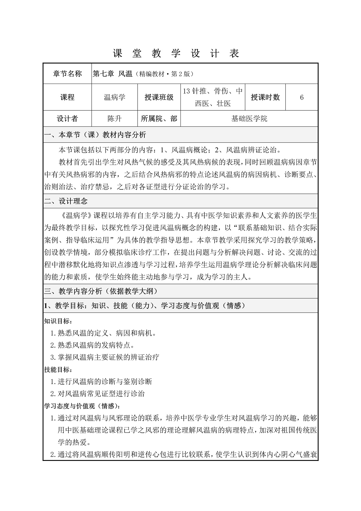 温病学教学设计——风温