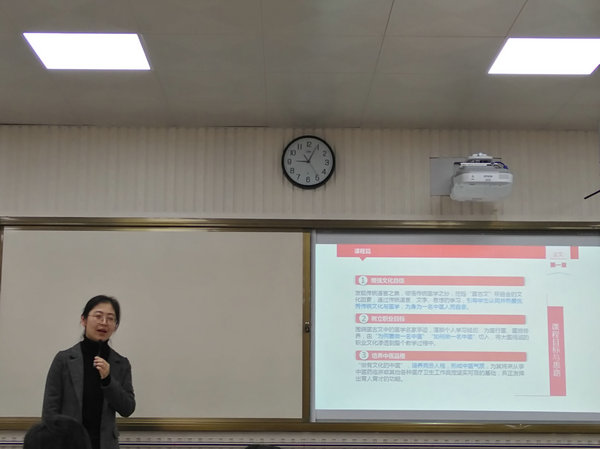 当天上午,张亭立副教授在仙葫教学楼1-310室作《医古文》示范课教学,她以流畅的语言、丰沛的情感为大家讲述了《华佗传》中“华佗之死”的前因后果。在授课过程中,张老师别出心裁的教学设计、简洁清晰的教学演示,以及旁征博引、融情于理的讲授风格,给大家留下了深刻印象。在传统的字词讲解之外,张老师创新性地从历史人物的性格和作者的谋篇布局出发,还原了华佗之死的历史原貌,将医德教育寄寓于课文讲解环节之中,体现了《医古文》课程“文以载道”的特色与作用,令听者受益匪浅。
