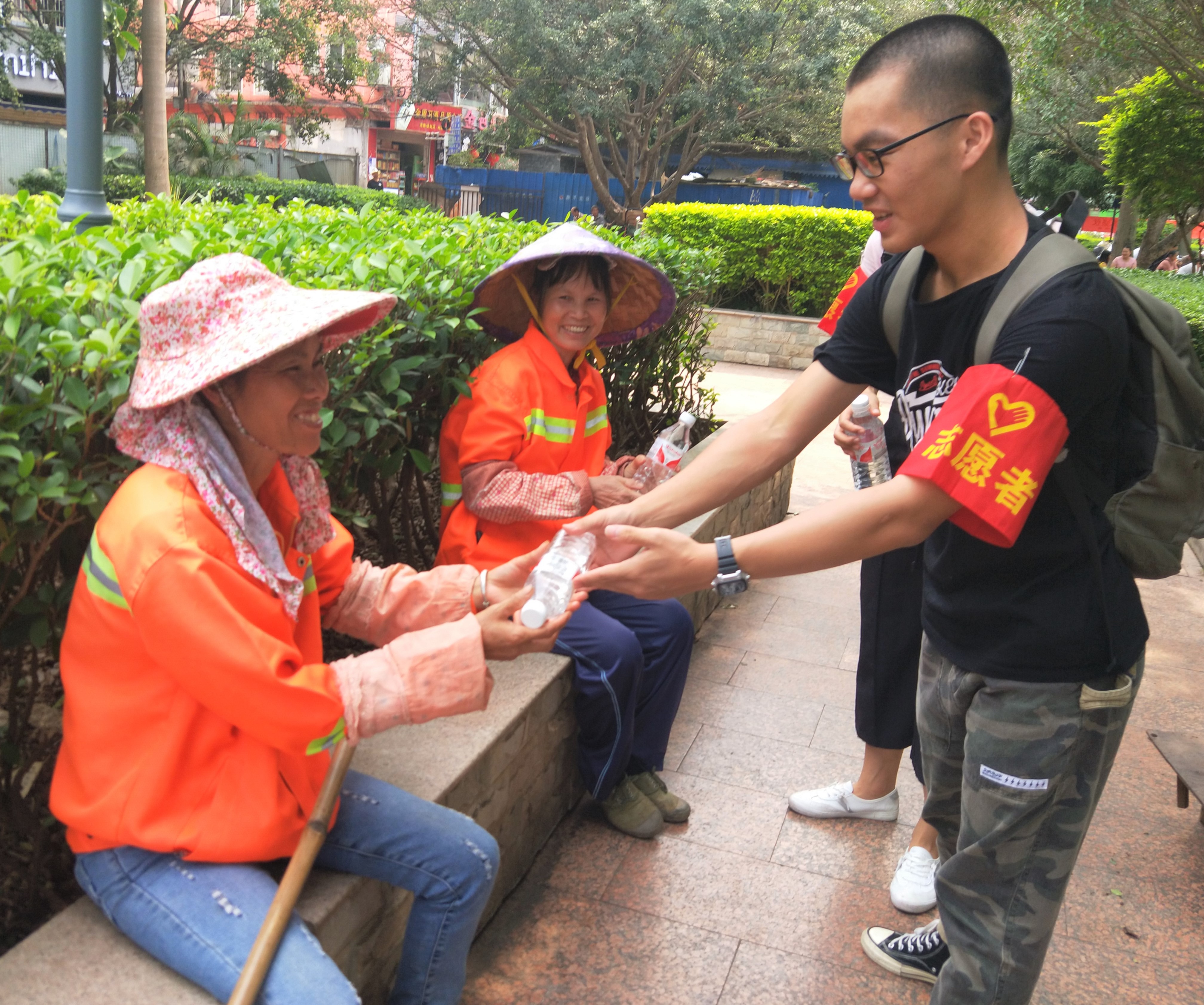 为增加活动影响力,让更多人感受到青春正能量,本次活动在仙葫管委会、taptap点点体育仙葫校区、新兴广场、海茵国际花城、仙葫农贸市场五个地点同时开展。活动期间,基础医学院团委、学生会志愿者们怀着极大热情,冒着炎热天气,走向大街小巷,寻找辛勤劳作的环卫工人,通过慰问送水、深情交谈、赠送创可贴等形式让他们感受到了社会的温暖,感受到社会关注,感受新时代大学生的热情。