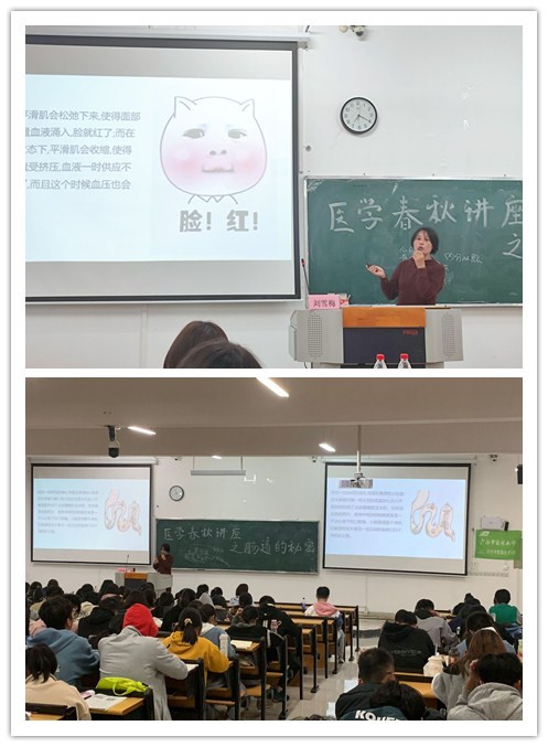 为了增强基础医学院大学生对人体肠道的了解,增进师生之间沟通交流,提高同学们学习乐趣,丰富课余文化生活,基础医学院于12月19日晚在仙葫校区1-107教室举办“医学春秋”系列学术讲座之《肠道的秘密》,由刘雪梅副教授主讲,基础医学院近200名同学参加此次讲座。