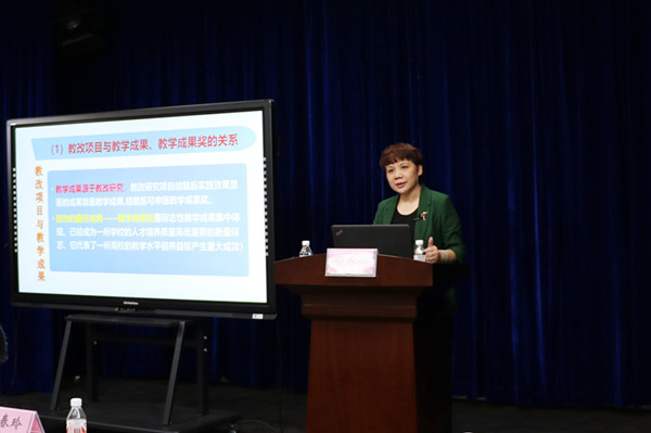 会议邀请了教育部、自治区人民政府和教育厅常聘高等教育咨询专家——广西大学曾冬梅教授作为主讲嘉宾。曾冬梅现场做了“教改项目申报的若干问题”的报告,围绕教学改革研究项目的概念、重要性、申报成功的要素、常见问题等四个方面进行了阐述,并进行现场答疑。