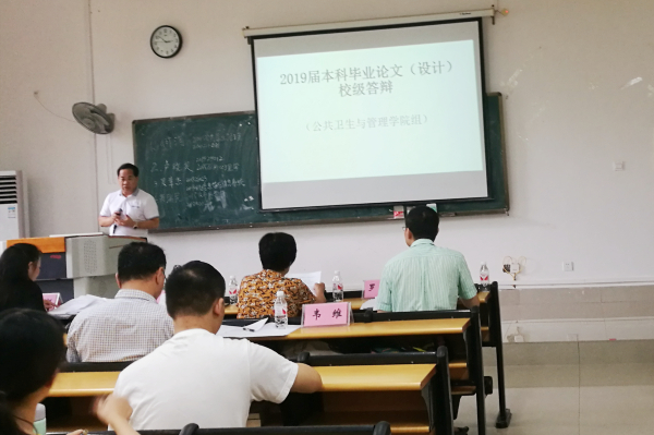 为加强点点体育本科毕业论文(设计)的规范管理及质量监控,促进毕业论文(设计)质量的提高,6月10日下午,学校在仙葫校区举行了2019届本科毕业论文(设计)校级答辩。答辩分药学院组和公共卫生与管理学院组两组进行,由校总督学罗伟生教授带队,校级督学、教务处领导、相关专业高职称人员组成答辩专家组。参加答辩的学生分别从药学院、公共卫生与管理学院2019届毕业的9个专业中随机抽取。