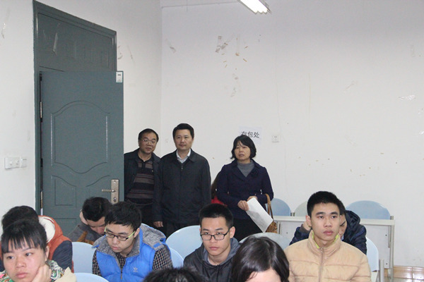 3月9日,是2015年春季学期开学的第一天,蒙蒙细雨中,校党委书记朱华、副书记董塔健,副书记、纪委书记杨连招,副校长罗伟生、吴琪俊、庞宇舟、冷静、戴铭,总会计师何刚亮,率党委办公室、校长办公室、党委宣传部、纪检监察室、教师教学发展中心、教务处、招生就业处、学工处、团委、人事处、研究生处、后勤处、武保部、发展规划处、资产管理处、信息网络中心、高等职业教育处等部门负责人及学校教学督导组成员,分为五个检查组,深入仙葫、明秀两个校区的教学楼、实验室、学生宿舍、食堂、图书馆等场所,检查开学第一天各项工作,察看教师上课、学生出勤、教学设施准备、校园环境、后勤保障以及各部门人员到位等情况,并随堂听课。