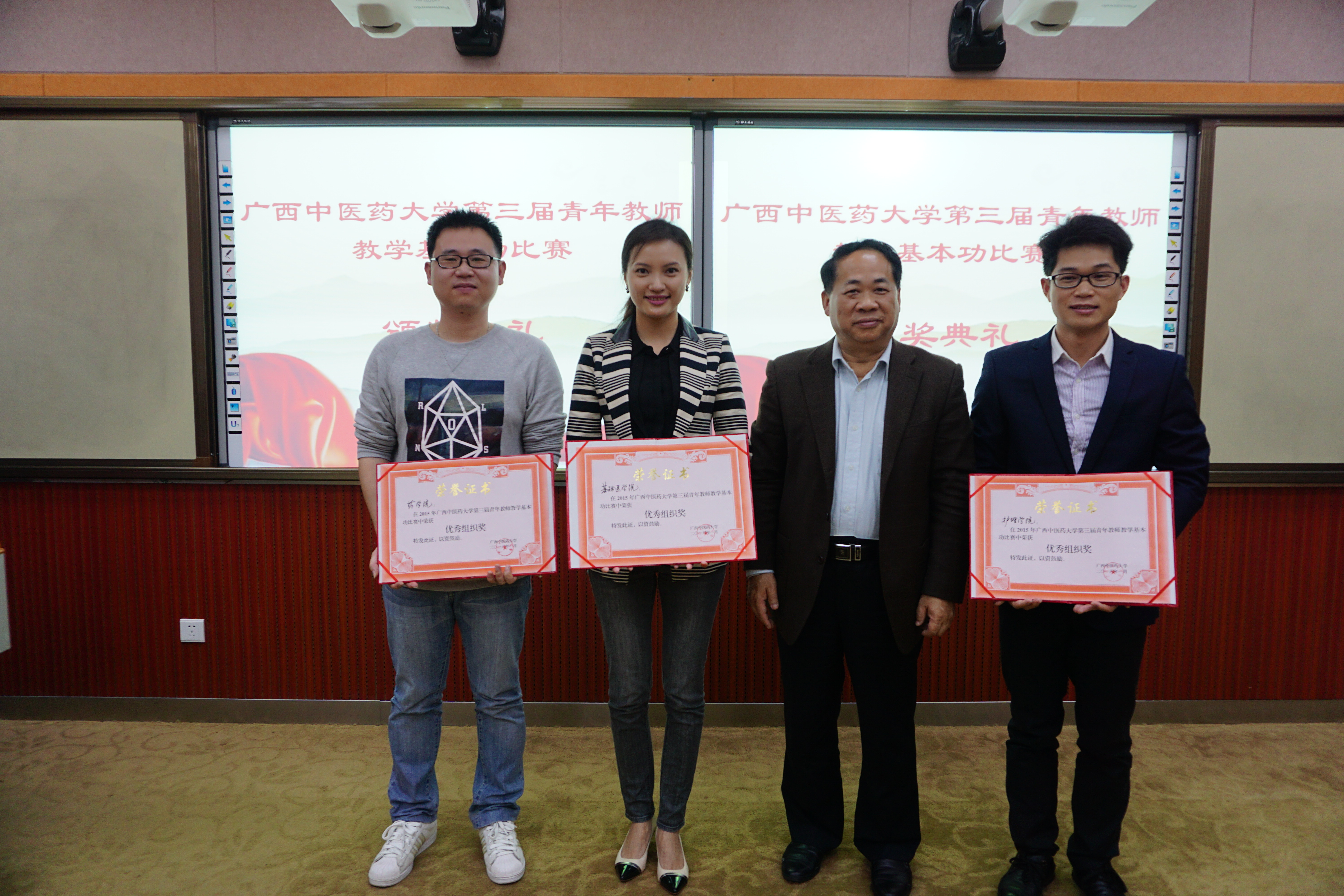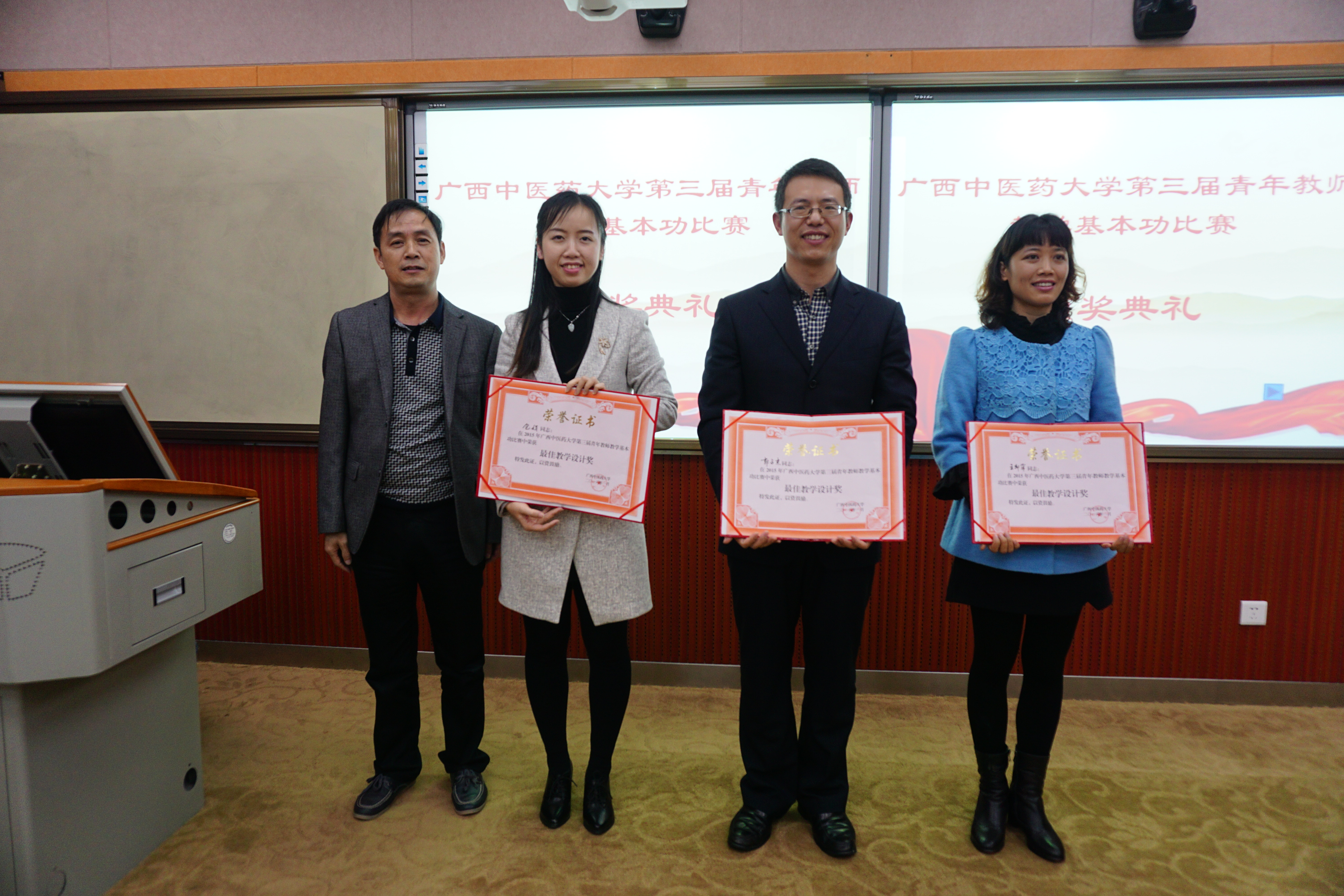 2016年1月4日-5日,taptap点点体育第三届校级青年教师教学基本功比赛在仙葫校区微格教室举行。本次比赛首次采用局域网内同步直播的方式进行,采取教学单位推荐和随机抽签相结合的方式,共有27位选手参加了比赛。参赛课程涵盖医学、药学、理学、人文社科等多门学科。本次比赛分教学设计、课堂教学展示和教学反思三个环节,参赛教师要从教学理念、教学设计、教学组织、教学方法和教态语言等方面全面展示教学基本功。比赛由学校教指委委员、教学名师、优秀教师、相关教研室教学经验丰富的专家代表担任评委,由学校罗伟生副校长担任现场评委组组长。参赛选手们的教学设计经匿名在线评审得出成绩,比赛现场每位选手利用15分钟进行教学演示,并在演示结束后进行教学反思,评委综合评分后结合教学设计分得到选手最终成绩。经过激烈的角逐,最终评出一等奖3名,二等奖6名,三等奖9名,优秀奖9名,最佳教学设计奖3名,优秀组织奖3名。