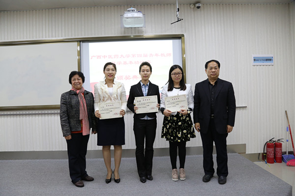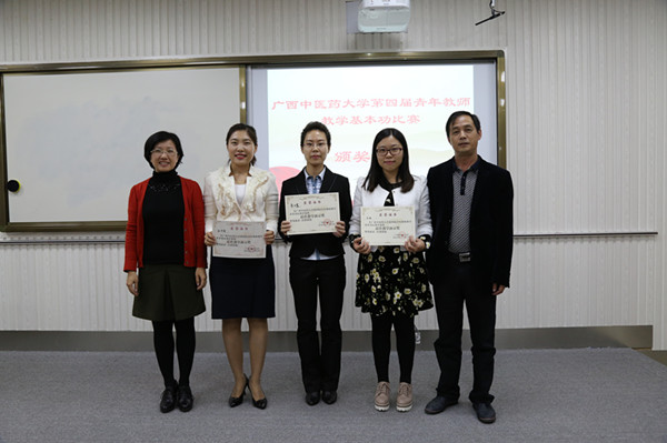 本届青年教师教学基本功比赛分两个赛场同时进行,1-310教室进行的是自然科学应用学科组比赛,由学校罗伟生副校长担任该组评委组组长,1-315教室进行的是自然科学基础学科组和人文社会科学组两场比赛,由原校党委副书记、学校教学督导组副组长陈雪斌教授担任该组评委组组长。参赛选手们的教学设计赛前经专家评审得出成绩,比赛现场每位选手进行15分钟进行教学演示,并在演示结束后进行教学反思,评委综合评分后结合教学设计分得到选手最终成绩。经过激烈的角逐,最终自然科学基础学科组比赛药学院林瑜获得一等奖,基础医学院赵飞兰获得二等奖,基础医学院钟静、药学院莫嘉雯获得三等奖;自然科学应用学科组比赛瑞康临床医学院童汪霞获得一等奖,护理学院凌芸、第一临床医学院黄毅获得二等奖,瑞康临床医学院玉华、基础医学院孔鹏云、药学院周改莲获得三等奖;人文社会科学组比赛人文社科学院孙方圆获得一等奖,人文社科学院周金衢获得二等奖,外语部李少丽获得三等奖。另外,比赛还评出了最佳教学演示奖:瑞康童汪霞、药学院林瑜、人文社科孙方圆;最佳教学设计奖:药学院周改莲、基础赵飞兰、人文社科周金衢;最佳组织奖:药学院、人文社科学院、基础医学院、瑞康临床医学院。