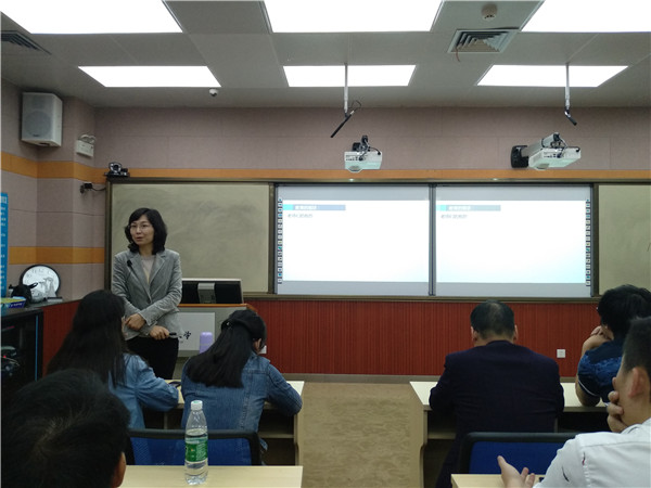 其次,朱老师向大家介绍了教学设计的八大环节,指出有效教学设计要重点思考课堂教学目标的确定、学生思维发展的可能性预测与引导及学生兴趣的培养和动机的激发。接下来,朱老师结合具体的案例,详细的向在场教师展示了如何将“以学生为中心”的教学理念落实到教学设计的八大环节中,尤其是在教学目标设定与教学活动设计环节。最后,朱老师强调,教师的教学方式要从经验型教学向反思型教学转变,要做到以学定教、为学而教,希望教师们通过改变教学设计来改进教学方法,增加教学中学生的参与、调动学生的全脑参与、做好学生学习的反馈,同时注重学生兴趣培养与动机的激发,以增加学生学习的主动性,有效性,从而提高教学质量。