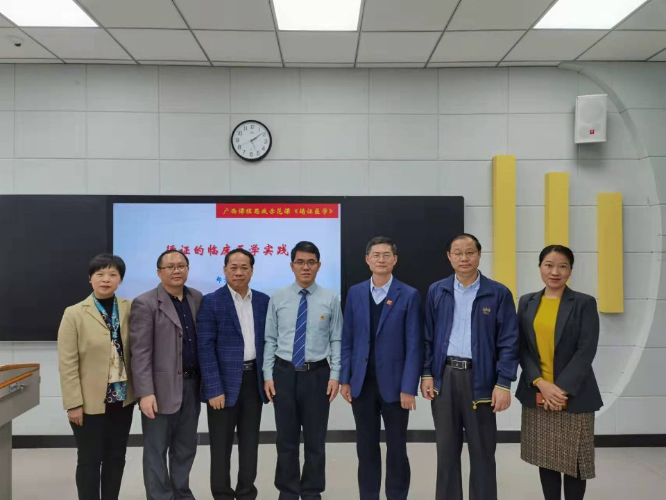 郑景辉教授在课前重点介绍了其采用导航的方式把循证医学的三大基本要素、核心思想及5A步骤与思政元素有机融合的教学理念,并在45分钟示范课中展示了课程思政元素在教学中的实际应用。课后还对现场及线上各高校教师的提问进行答疑探讨。广西高校课程思政建设专家咨询委员会委员、学校党委副书记何并文教授,教育部高等学校中西医结合类专业教学指导委员会委员、学校总督学罗伟生教授进行了课后点评。他们一致认为主讲教师具有扎实的教学基本功和深厚的学科专业素养,并有较强的育人意识;课程思政元素与教学内容有机融合,具有较强思想性和逻辑性;教学设计新颖,教学方法和教学手段直观巧妙,是一门优秀的课程思政示范课,希望广大教师认真学习借鉴,切实践行立德树人的根本任务。