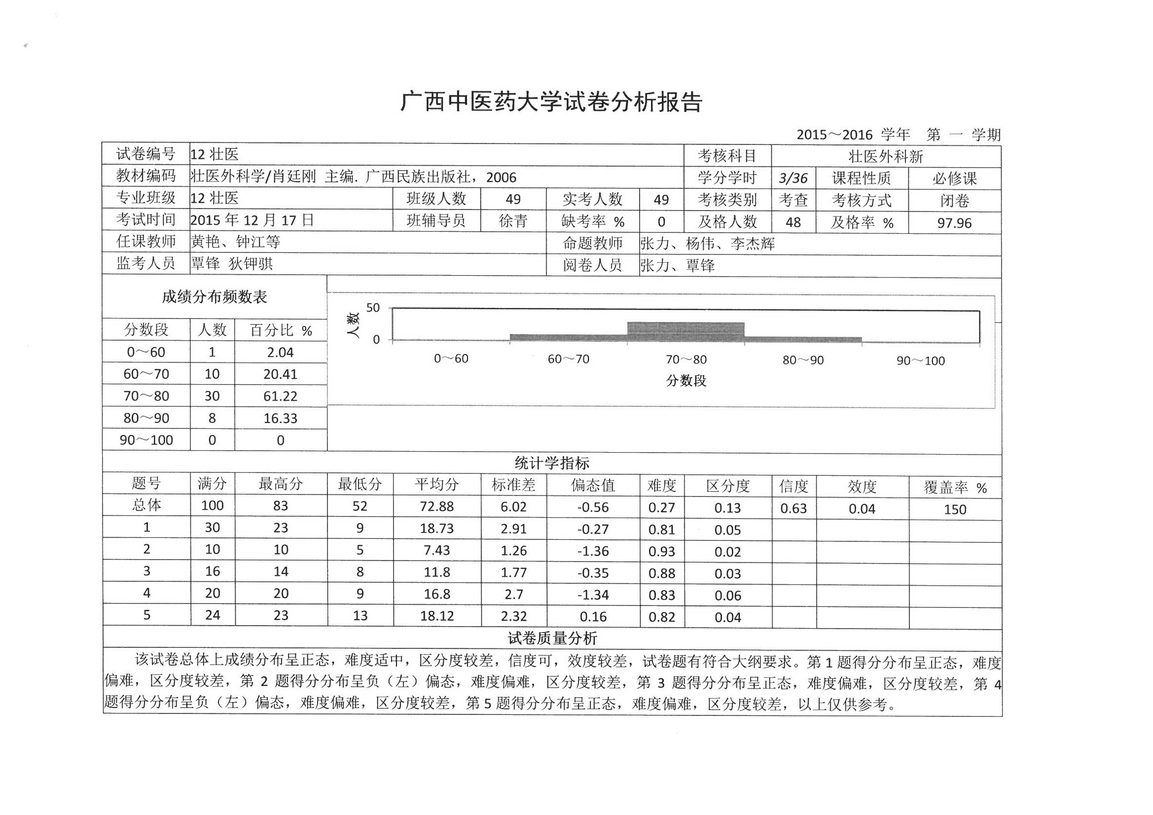 6. 第一临床医学院考试结果分析举例