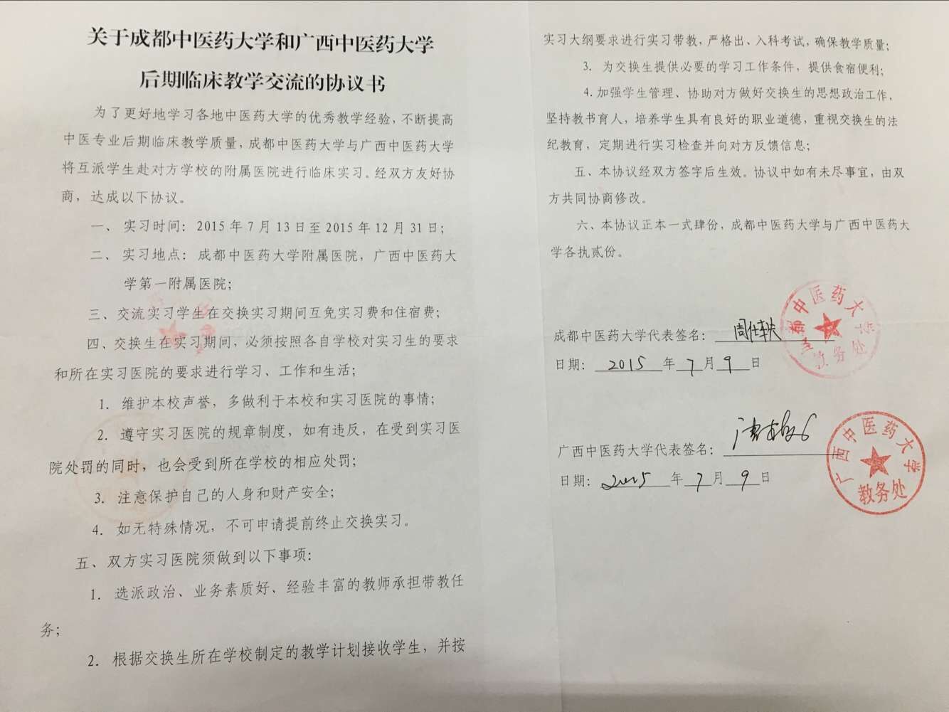 1. 与成都中医药大学交换实习生协议书
