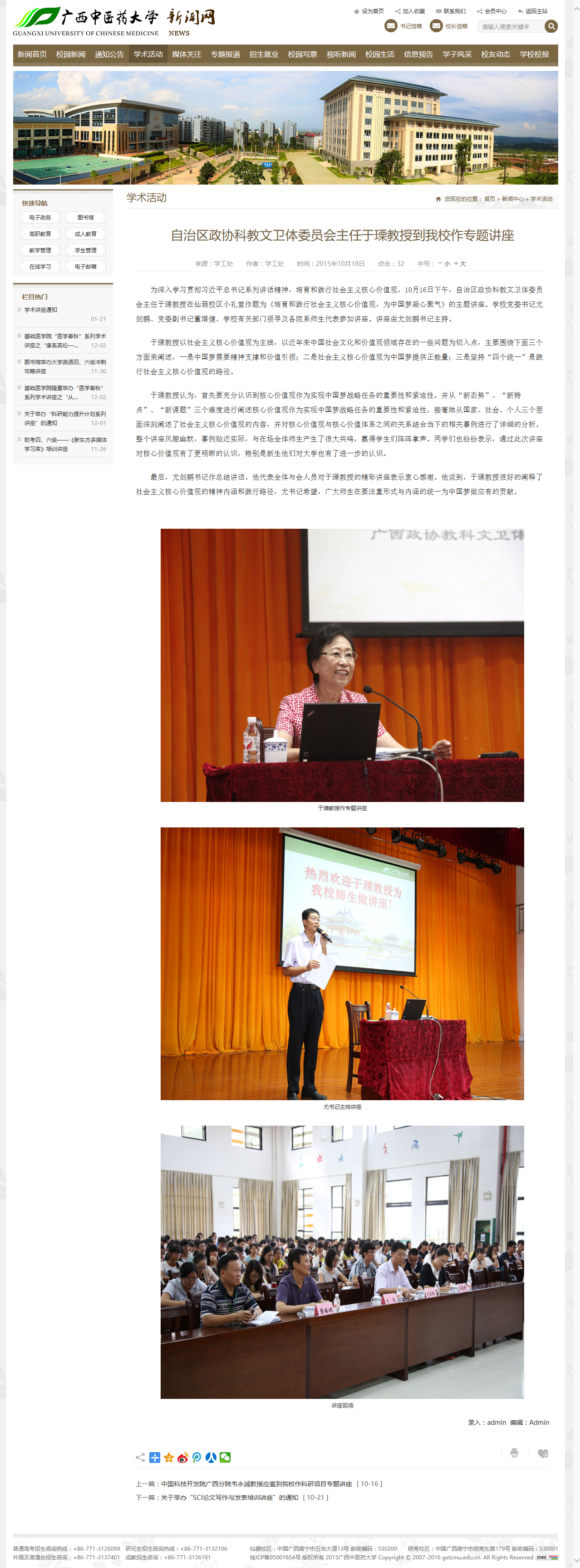 1. “中国梦”主题讲座—于瑮讲座新闻