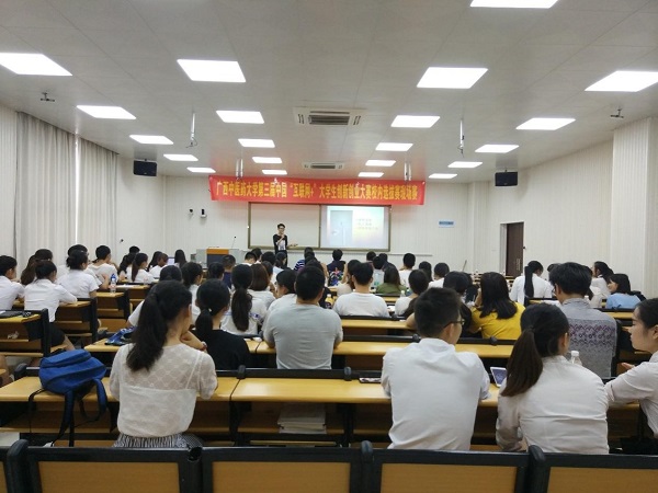 6月27日下午,由学校教务处和校团委共同主办的taptap点点体育第三届中国“互联网+”大学生创新创业大赛校内选拔赛现场赛在仙葫校区教学楼顺利举行。现场赛邀请了广西大学生创业就业研究会执行会长,广西邦友投资有限公司投资人范俭、中国联通广西分公司电子商务部主任,沃创富项目总监周彦波、爱迪实验室广西众创中心副总经理苏杰、亚信科技(中国)有限公司广西项目总监黄宗海、南宁市医保局干部苏桂前等行业专家及学校教务处副处长韦维、团委副书记杨删等作为评委莅临现场。现场赛由校团委组织部部长陈晓东主持。