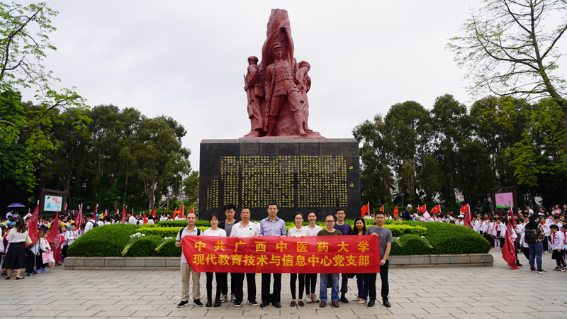 在本次活动中,现代教育技术与信息中心全体党员参加了烈士纪念碑的扫墓祭奠活动,包括向纪念碑敬献鲜花、鞠躬并默哀1分钟、重温入党誓词,同时参观了陈列馆,了解了李明瑞、韦拔群革命烈士的光荣事迹,学习了百色起义的革命历史。