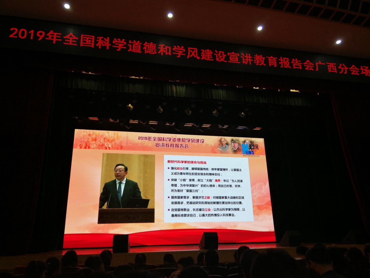 11月13日,2019年全国科学道德和学风建设宣讲教育报告会在人民大会堂举行。点点体育组织青年教师、研究生、本科生200名师生代表赴广西大学大礼堂同步直播分会场,同时积极组织各学院、附属单位共500多名师生通过网络视频同步收看了报告会。