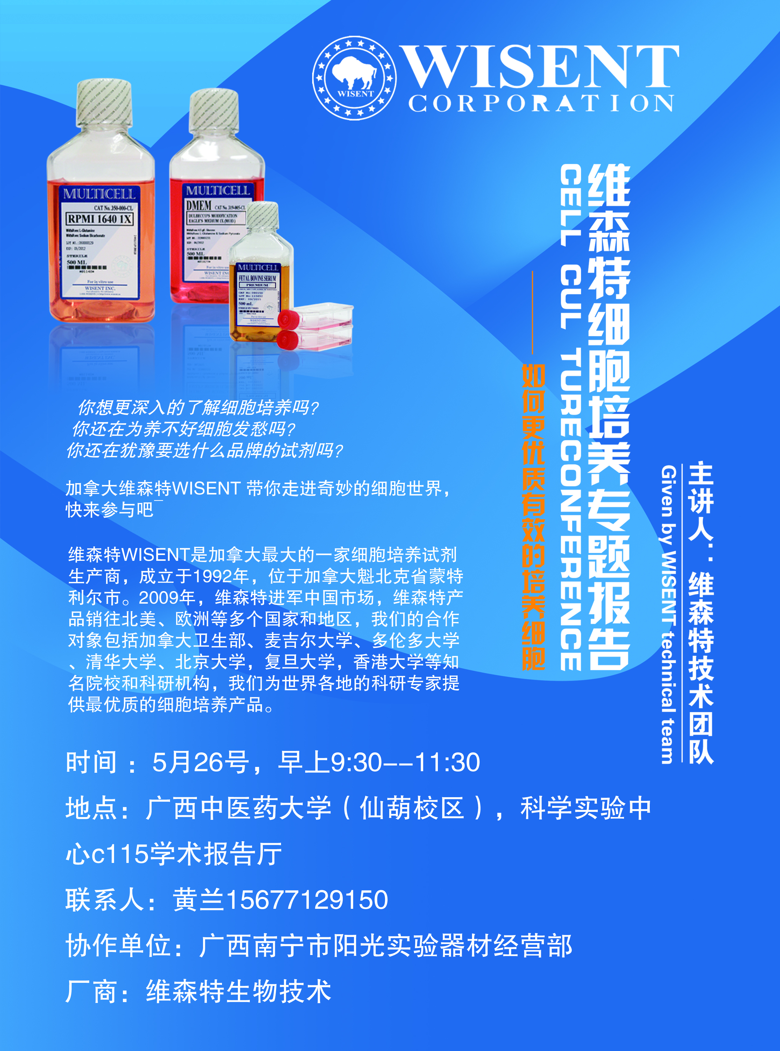 关于举办维森特细胞培养专题报告的通知