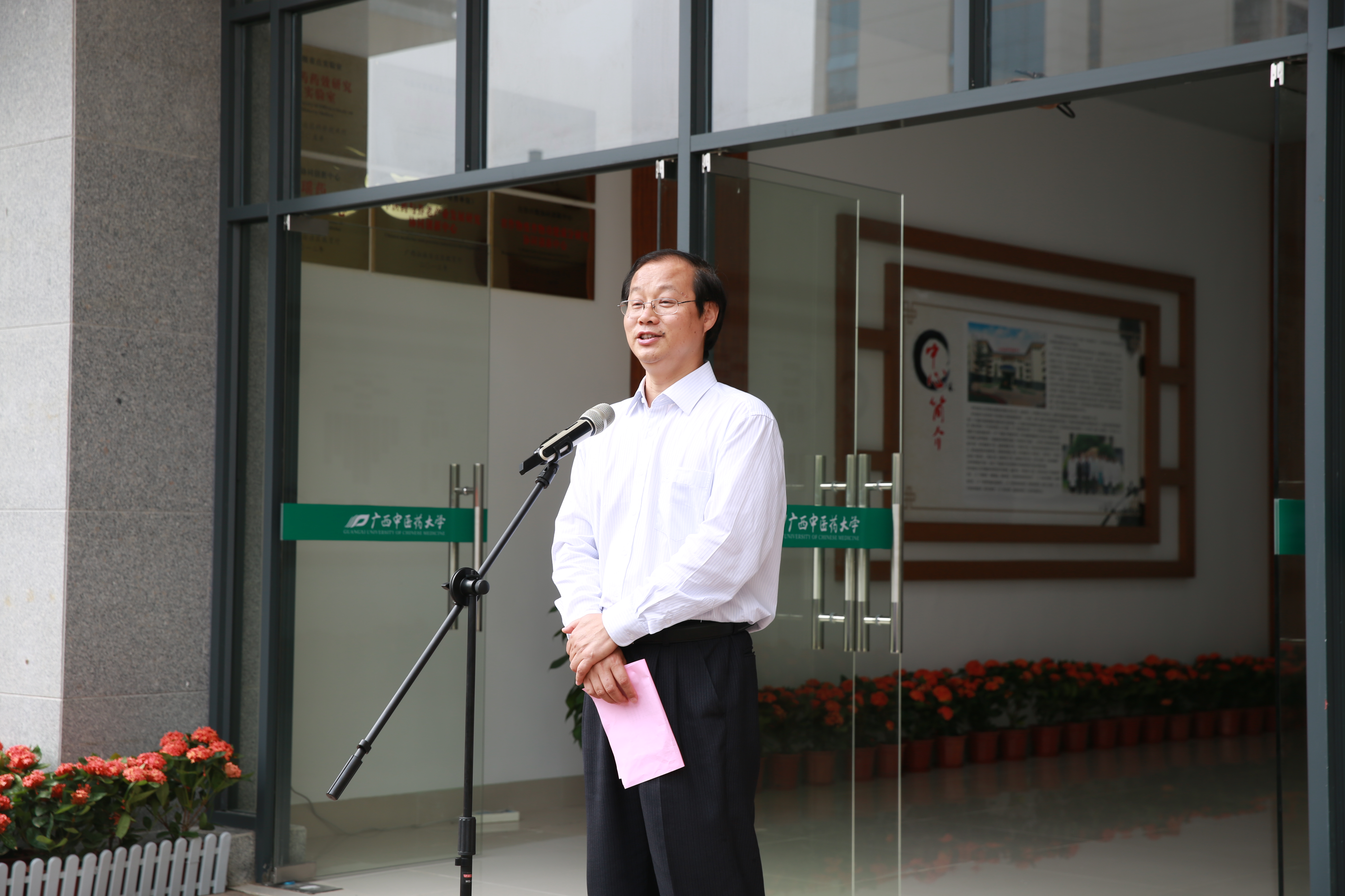 最后,由唐主任宣布广西中医药科学实验中心正式启用,并邀请刘建宏副厅长、刘力校长、刘红宁书记、杨世林教授以及冷静副校长共同参与揭幕。