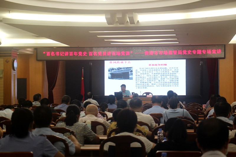 6月16日下午,“百名书记讲百年党史 百名党员讲百场党课”党史学习教育专题宣讲在 贵港市 市市场监管局开讲, 我院 副院长李源作专题宣讲。