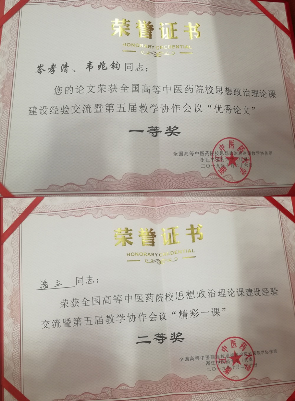 我院老师岑孝清,韦兆钧的论文获得了全国中医药院校思想政治理论课建设经验交流暨第五届教学协作会议论文评比一等奖、潘立老师在“精彩一课” 教学展示中获得二等奖的好成绩。