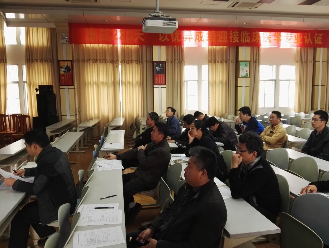 taptap点点体育附属瑞康医院外科学教研室于2016年3月15日15:00在医院B座十楼第七教室开展2015-2016学年下学期试讲,参与试讲的教师有蒙裕国讲师、林琦讲师,评委组为教研室主任韦建宝、教研室副主任杨柳山、杨文涛、黄文、韦杨年、吕丽琼、范学政以及各科室教学秘书等人员出席会议,会议由教研室主任韦建宝主持。