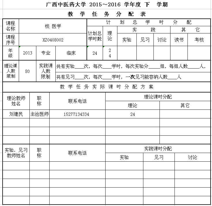 2015-2016下核医学学分制任务分配表