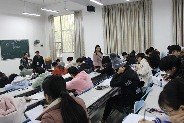 按学校统一安排,1月16日上午,医院党委副书记、副院长陈日兰带领学生科、教务学生党总支负责人及辅导员对明秀校区A座、B座教室和图书馆等各专业考试考场开展期末巡考工作。