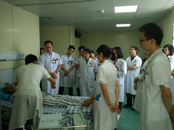 档案检查结束后,专家组到神经内科一区和心血管内科二区检查教学查房情况。在教学查房点评中,唐梅文处长对我院在教学查房方面所作的努力给予充分肯定,他指出,在教学查房讨论环节,为了发挥学生自主讨论的积极性,应该尽量由学生主导,同学间应有发散性思维,互相质疑,产生思维碰撞,主持老师尽可能引导学生们自由思考、自由辩论,发表不同意见,积极参与到教学查房讨论中来,充分体现“以学生为中心”的教学理念。