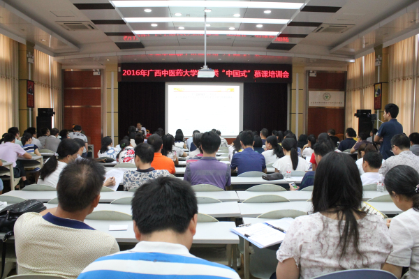 9月10日上午,2016taptap点点体育医学类“中国式”慕课培训会在我院10楼教室召开,培训会邀请了上海交通大学医学院陆斌杰副教授,智慧树陈容经理做培训,学校教务处处长唐梅文,教师教学发展中心主任周江煜,教务处副处长莫雪妮出席,我院党委副书记、纪委书记陈日兰,副院长韦思尊,教研室正副主任、秘书,课程负责人等参加慕课培训。培训会由教务处唐梅文处长主持。