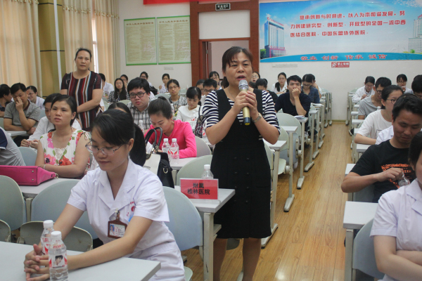 为进一步规范我院实践教学活动,提高实践教学质量,更好地推进临床医学专业认证工作,我院于2016年10月14日下午组织开展了教学查房示范公开课。会议邀请了附属三〇三医院、附属桂林医院、广西民族医院的教师代表参加,我院党委副书记、纪委书记陈日兰及医院各临床科室主任、副主任、教学秘书、教师代表、2012级临床医学专业全体实习生参加会议。