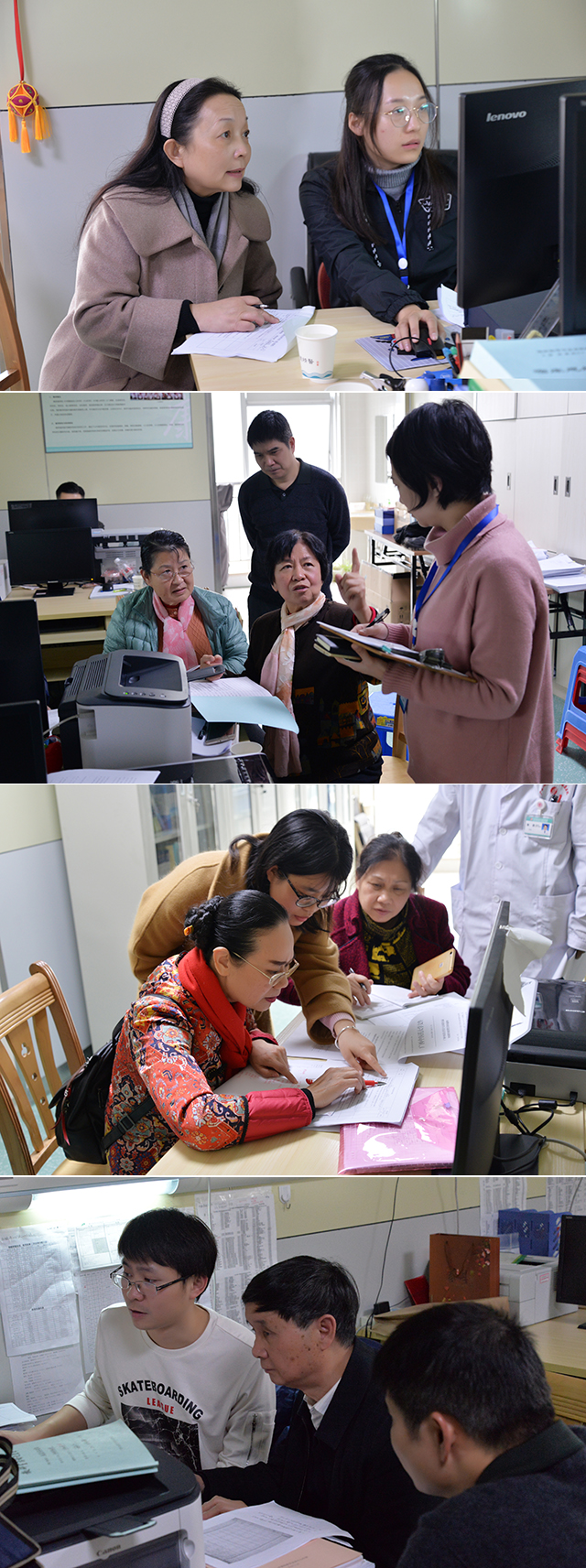 参加复评的教研室主任首先进行教研室建设情况PPT汇报,随后督学组专家分组深入各教研室开展复评工作,对照评估指标,通过查阅档案材料、电子版资料、详细询问等方式进行全面的评估考核。评估过程中督学组对各教研室存在的问题进行了反馈与指导。