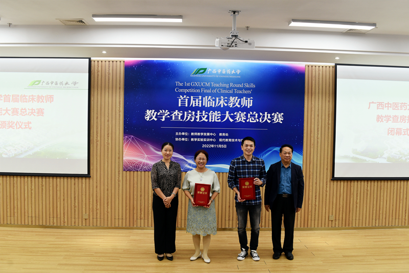 总决赛上,我院中医组、西医组及护理组共9支代表队与第一临床医学院、壮医临床医学院、第三临床医学院(柳州市中医医院)的22支队伍同台竞技。经过一天的激烈角逐,我院斩获一等奖2个(儿科赵敏芳、手术麻醉科廖华)、二等奖4个(产科刘卓、妇科一区韦林、胃肠外科高丕尧、消化内科二区庞春)、三等奖2个(中医经典病房冯原、胸心血管外科韦乐乐)、优秀奖1个(神经内科二区欧俐羽)及优秀组织奖1个,其中我院中医组及护理组代表队包揽总决赛第一名。