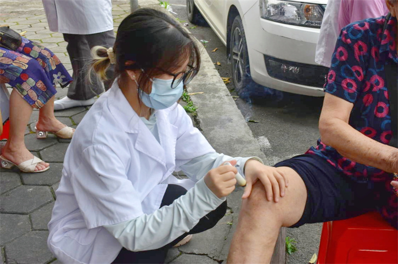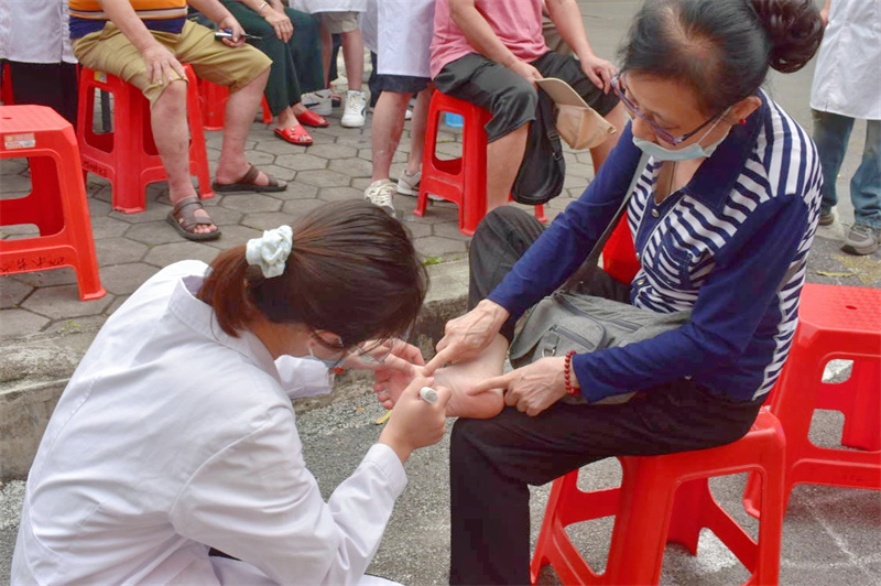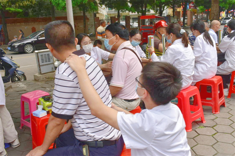 活动当日,志愿者医生们早早地就在社区广场为到访市民提供疾病咨询诊治,用药指导,免费测量血压、以及手法按摩、艾灸、健康知识宣传等服务,同时向市民传授健康保健、流感防治、高血压、糖尿病、急救等与群众日常生活密切相关的保健知识,进一步增强群众防病治病意识。