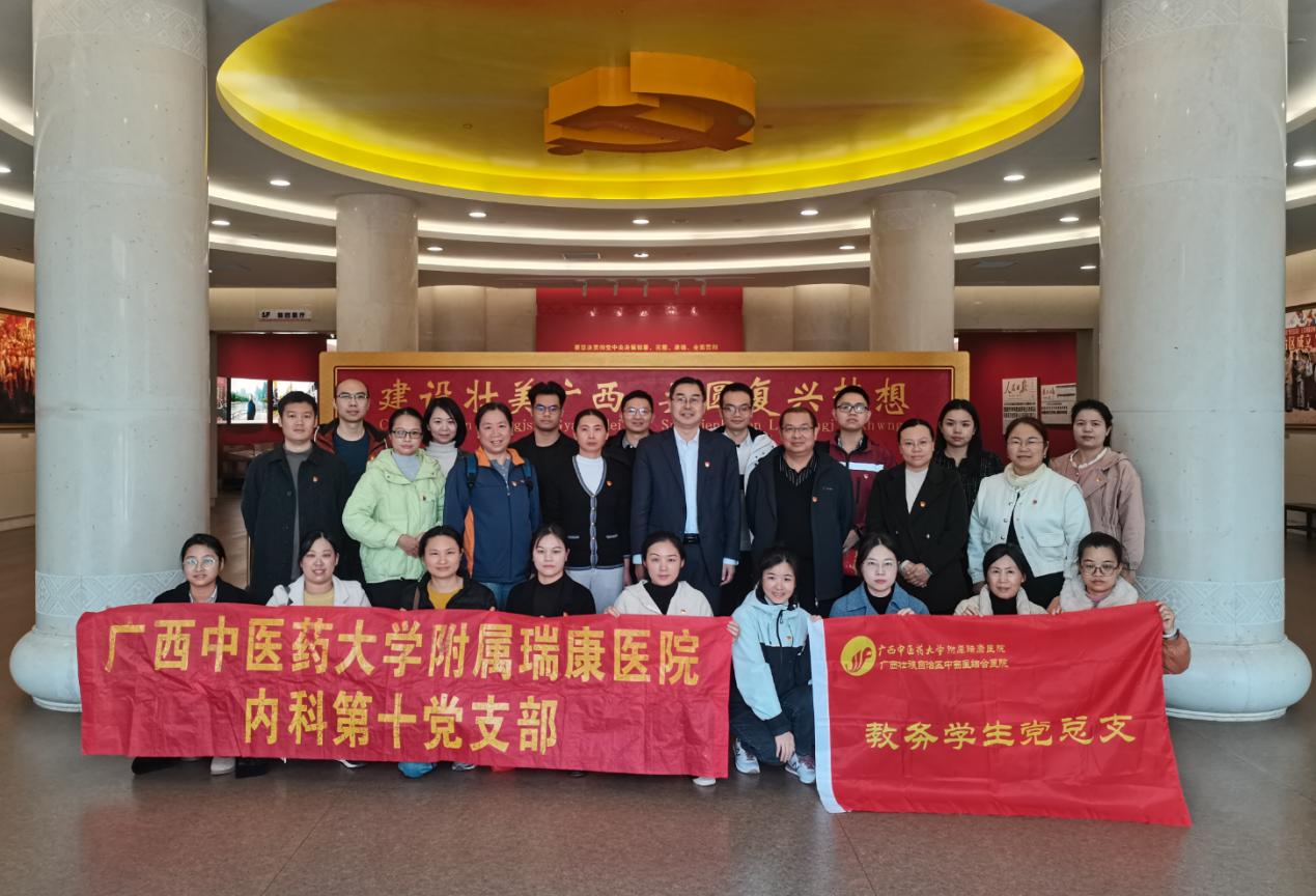 为深入学习贯彻党的二十届三中全会精神,进一步强化党员的爱国情怀和红色基因传承,12月25日下午,医院内科第十党支部与教务学生党总支到广西展览馆,联合开展以“信仰的力量-初心如磐,薪火相传”为主题的党日活动,医院党委委员、副院长古联以普通党员的身份回到所在支部参加活动。
