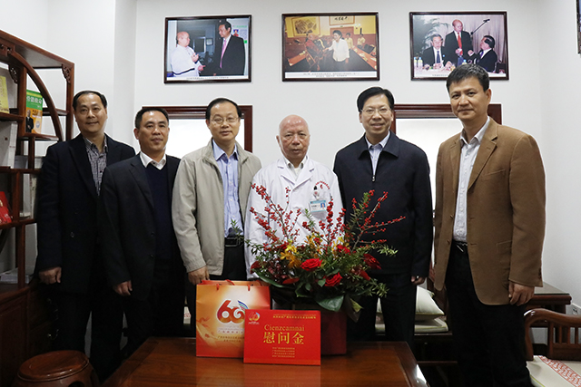 殷殷关切暖人心,声声祝福寄深情。在全区各族人民喜迎自治区成立60周年之际,12月7日上午,自治区政协副主席刘慕仁莅临瑞康医院,带着自治区党委、政府对医疗工作者的亲切关怀和深情厚意,看望慰问国医大师韦贵康教授,感谢他为广西医疗卫生事业发展以及民族团结进步作出的突出贡献。taptap点点体育副校长戴铭,瑞康医院院长唐友明,副院长陈锋陪同慰问。