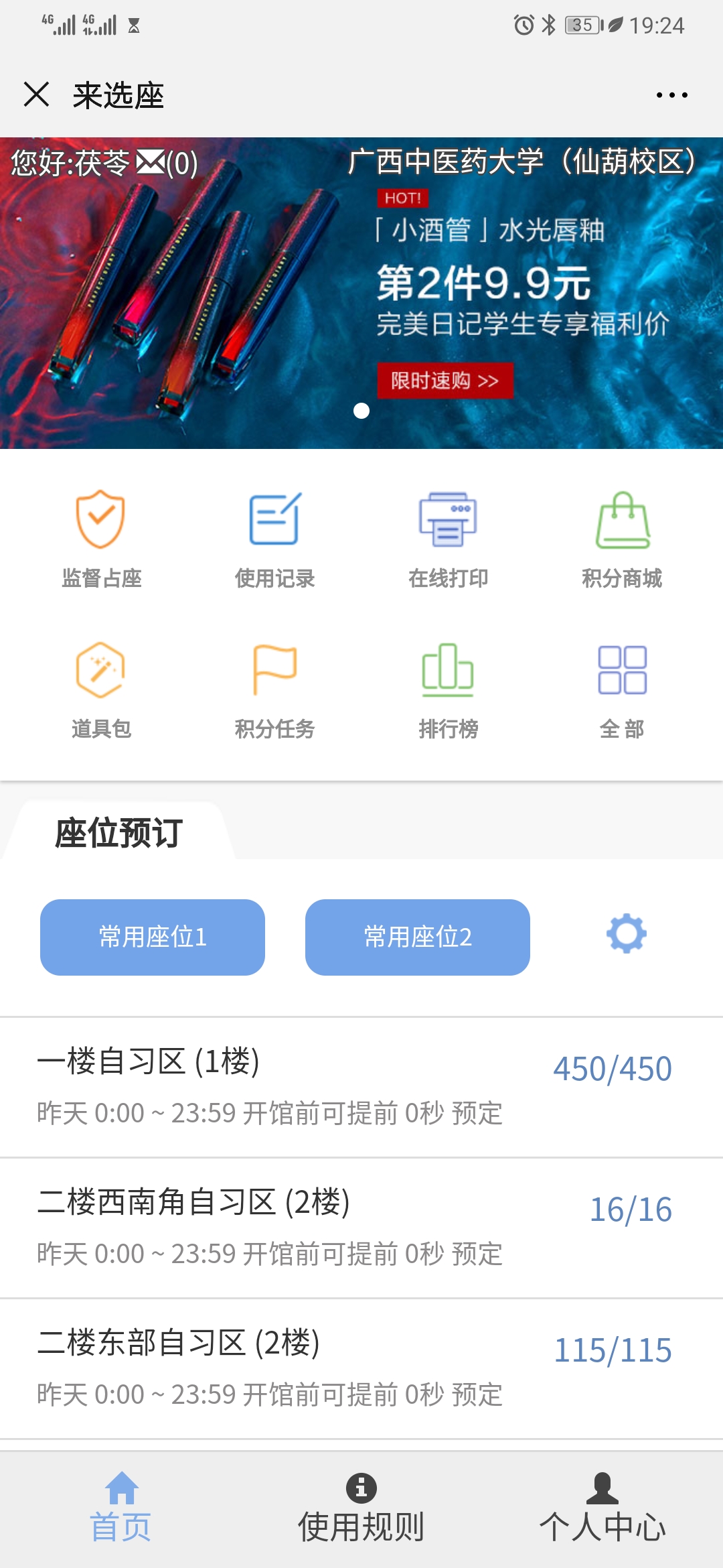 第二步:点击下方微服务选择校区进入选座系统进行预约选座
