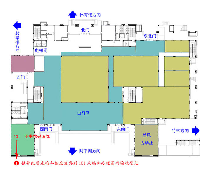 4.携带纸质图书登记表(一式两份)、相应购书发票(包含或另附图书清单)和支付凭证前往仙葫校区图书馆一楼101采编部进行登记,由图书馆负责馆员在纸质发票背面及纸质图书登记表相应位置写明“图书已登记”后,持纸质发票及纸质图书登记表到仙葫校区图书馆三楼304办公室加盖图书馆公章。纸质图书登记表一份用于各二级学院(部门)存档,另一份留在图书馆采编部存档。未尽事宜可咨询图书馆采编部:0771-6723991。
