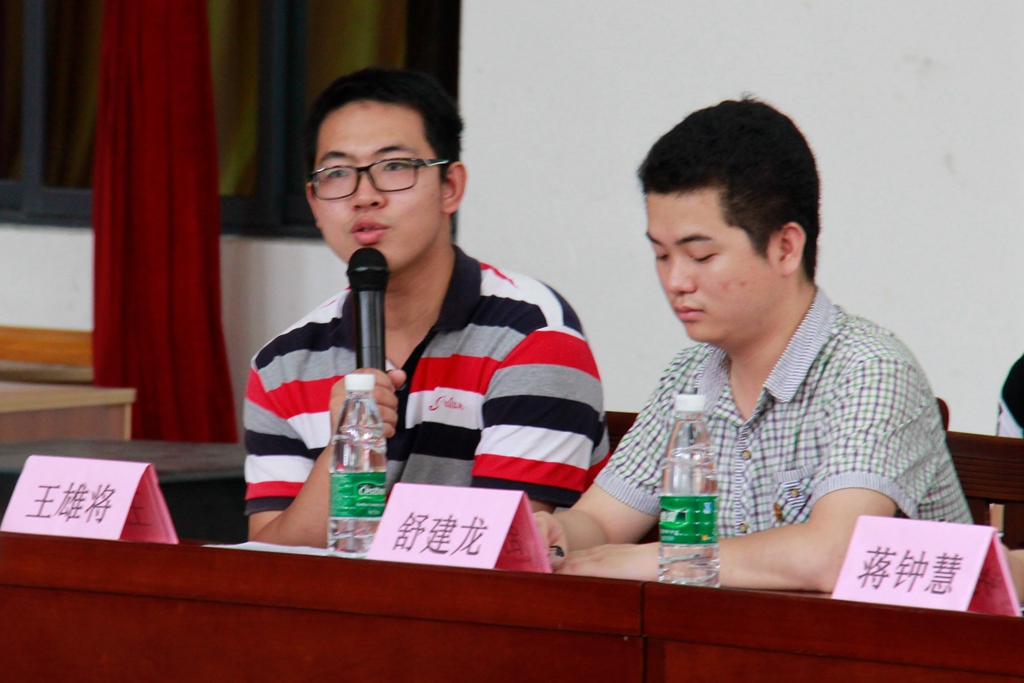王雄将从自己入学的经历谈起,分享了作为学生会主席做到学习工作两不误的方法,强调做好学生干部要做到“不忘初心,方得始终”。他给学生干部提出了几点建议: “学生干部必须具备三项能力:执行力、思考力和统筹力。大一的学干,要有执行力,勤动手,了解活动举办流程;大二的学干,要有思考力,思考如何处理事情才能达到理想的效果。大三的学干,要有统筹力,要把每个成员放在能发挥他特长的位置。”